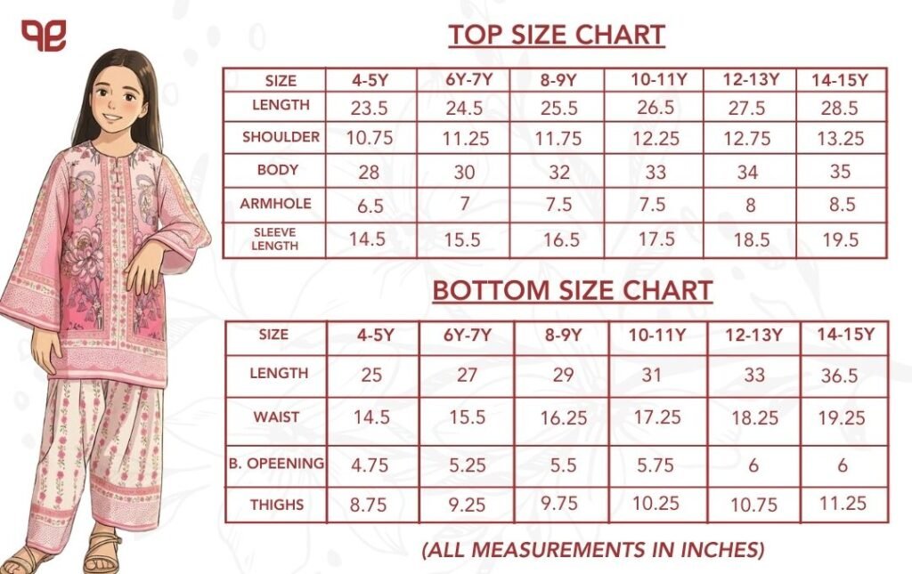 4/5 Years: Long-23.5, Body-28, Sleeve-14.5 inch.