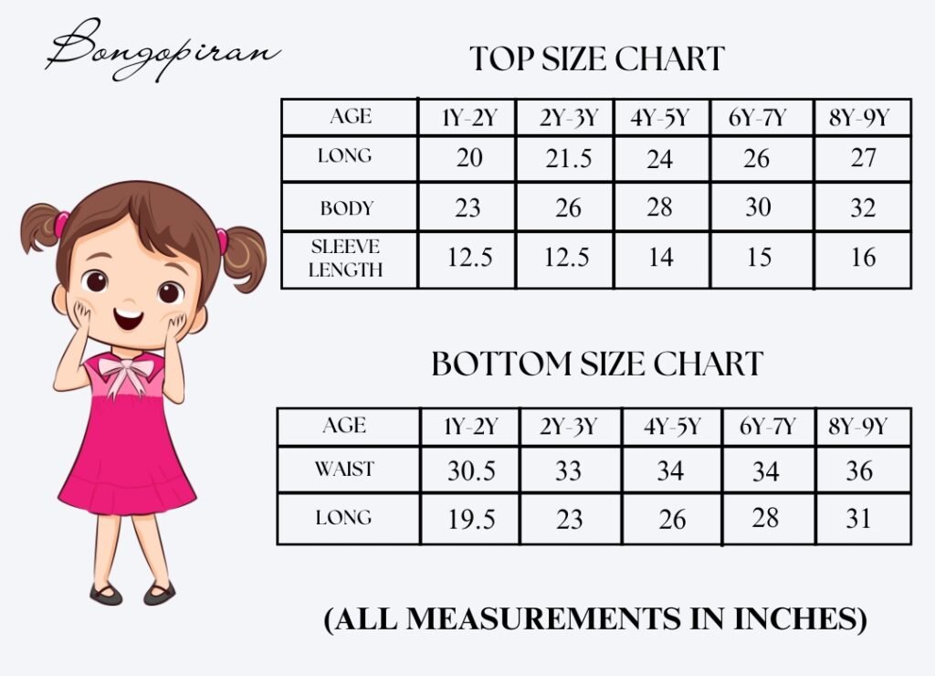 6/7 Years: Long-26, Body-30, Sleeve-15 inch.