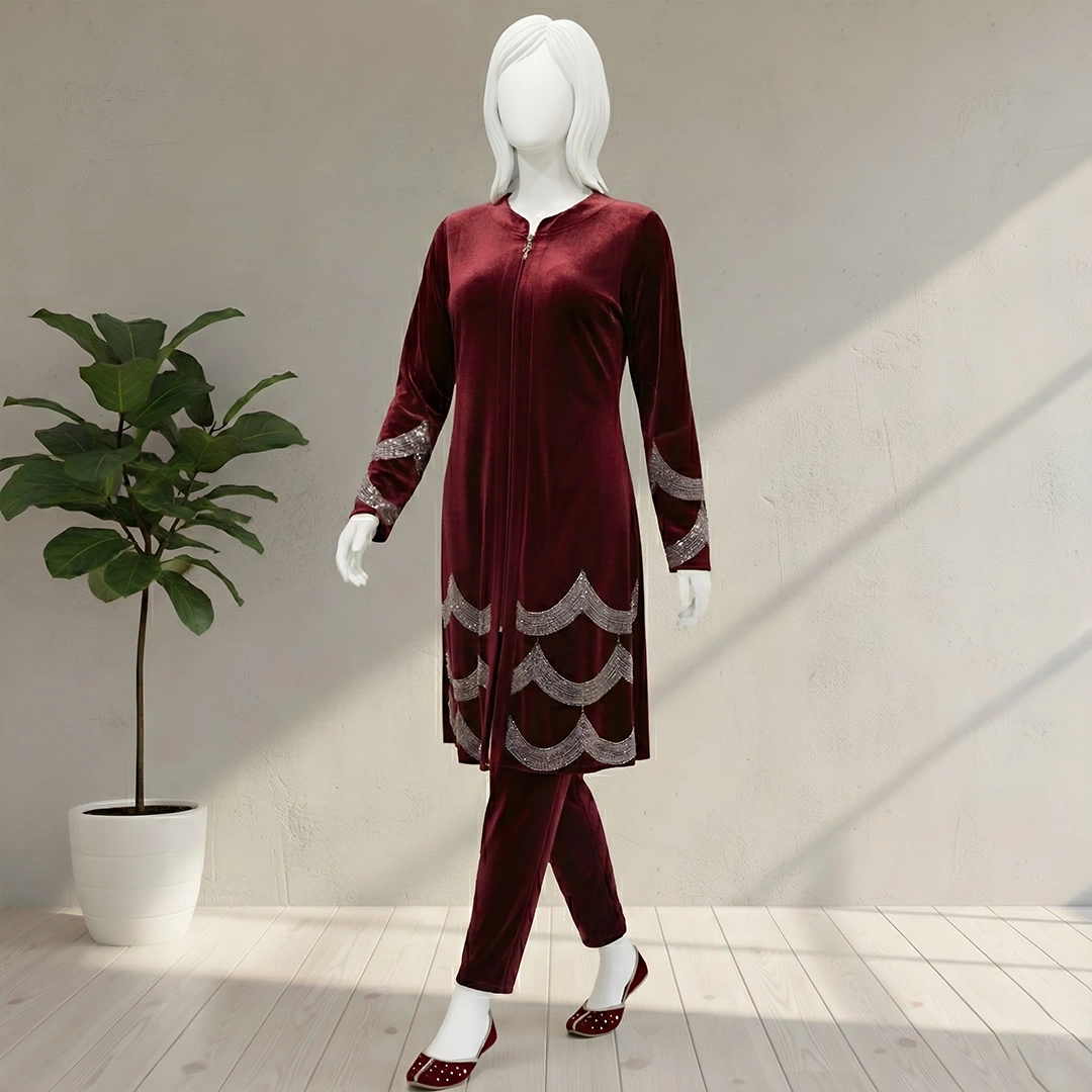 Suitable for weddings, formal gatherings, and seasonal celebrations, this outfit offers a sophisticated appearance with timeless charm. A distinguished choice for those seeking a classic yet fashionable winter ensemble.
