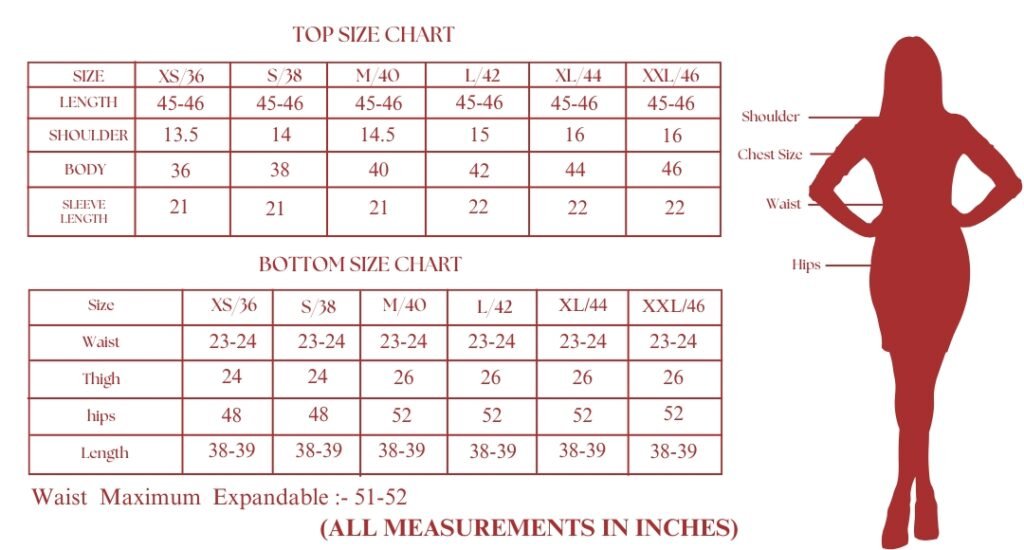 XL (Extra Large) = Chest/Bust: 44, Length:45-46