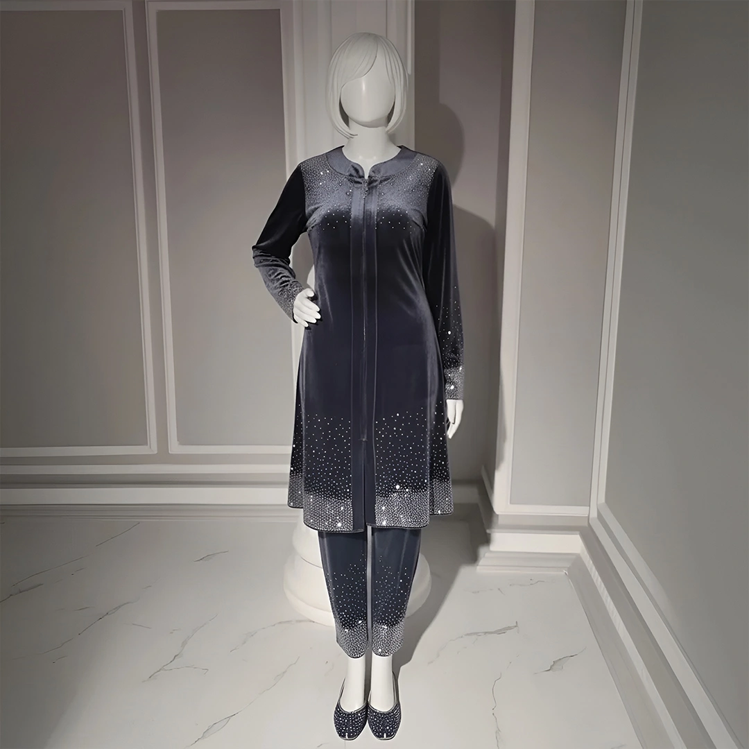 Be the first to review “Premium Grey Velvet Co-Ord with Stone Detailing”