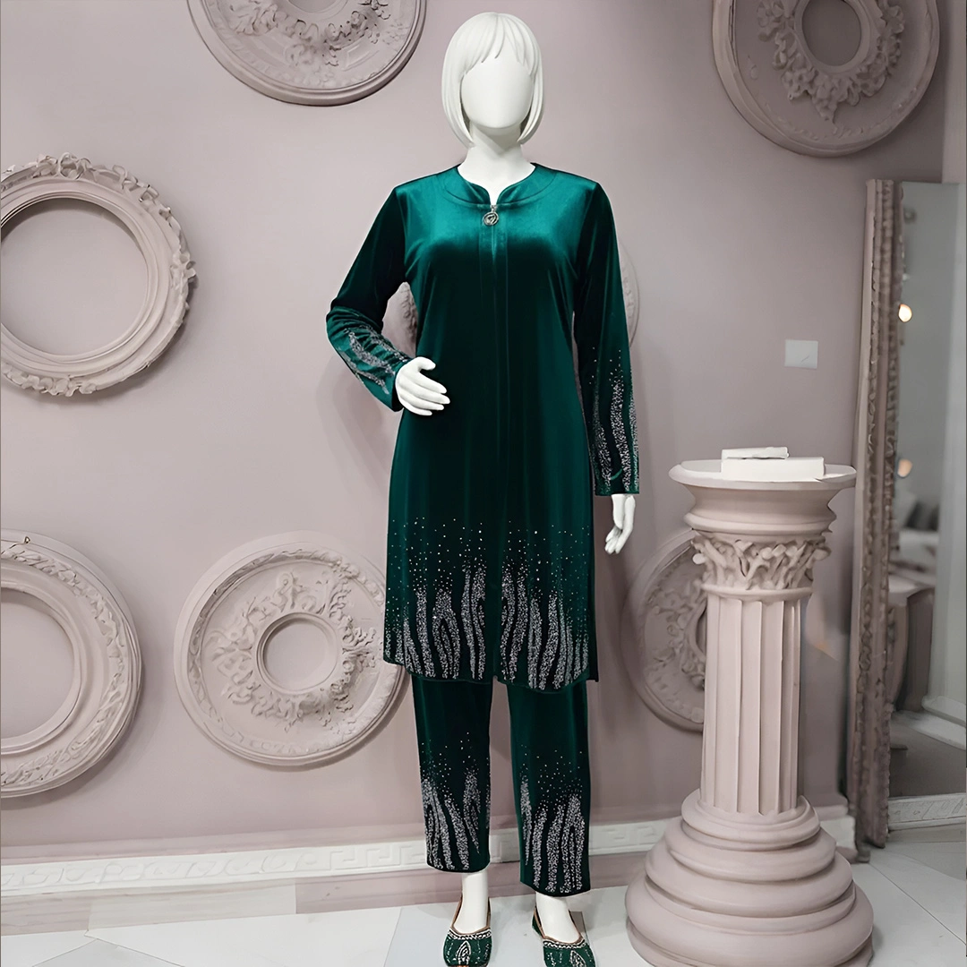 Suitable for weddings, formal gatherings, and seasonal celebrations, this outfit offers a sophisticated appearance with timeless charm. A distinguished choice for those seeking a classic yet fashionable winter ensemble.