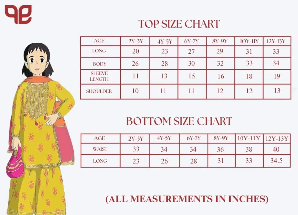 4/5 Years: Long-23, Body-28, Sleeve-13 inch.