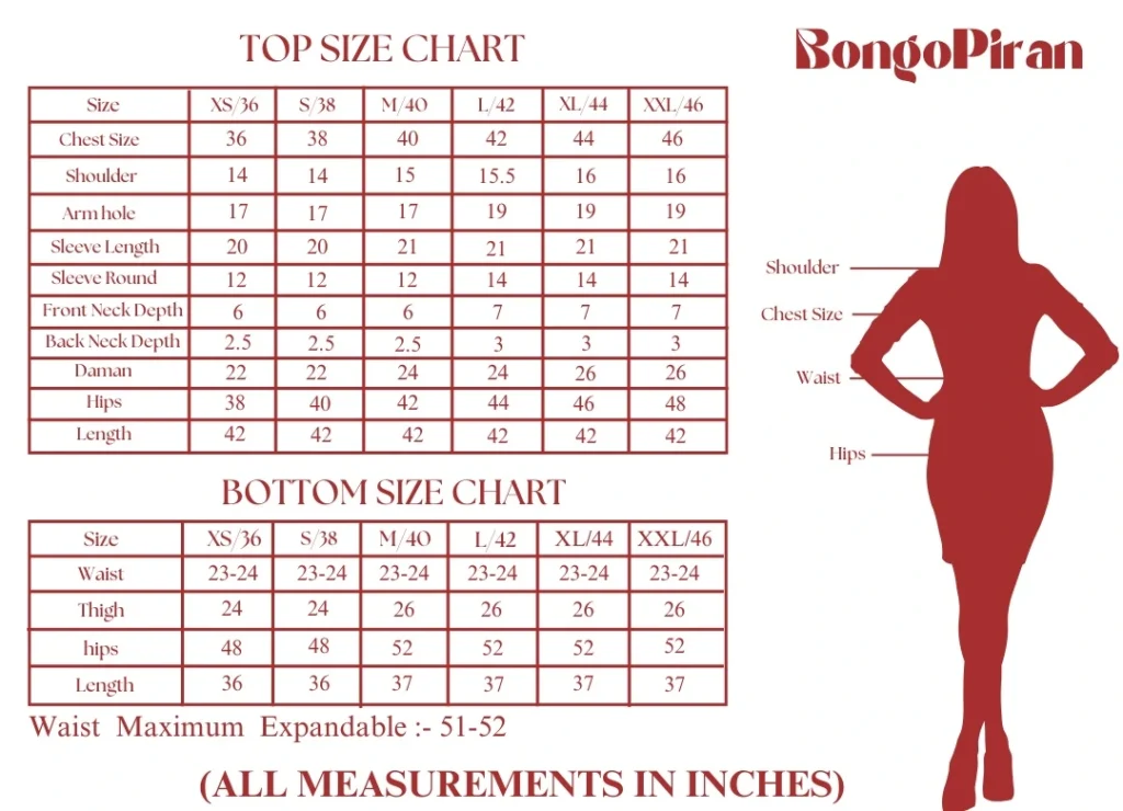 XXL (Double Extra Large) = Chest/Bust:46, Length: 42